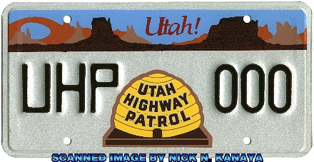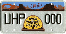 REFERENCE NUMBER: UT-HP1FIRST YEAR OF ISSUE: UNKNOWN PLATE TYPE: UTAH HIGHWAY PATROL BASE MATERIAL: ALUMINUM REFLECTORIZATION: PARTIAL - BACKGROUND ONLY VALIDATION: NONE USED NOTES: USED ON HIGHWAY PATROL VEHICLES