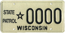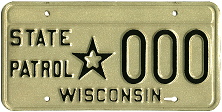REFERENCE NUMBER: WI-ND-SP3FIRST YEAR OF ISSUE: 1980s PLATE TYPE: STATE PATROL BASE MATERIAL: ALUMINUM REFLECTORIZATION: PARTIAL - BACKGROUND ONLY VALIDATION: UNKNOWN NOTES: 4-DIGIT SERIAL IN DARK BLUE, PRINTED STAR