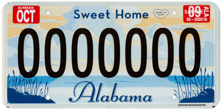 FIRST YEAR OF ISSUE: 2009 PLATE TYPE: GENERAL ISSUE BASE MATERIAL: ALUMINUM REFLECTORIZATION: FULLY REFLECTIVE VALIDATION: MONTH AND YEAR STICKERS ON PLATE NOTES: BLACK SERIAL ON 'SWEET HOME' GRAPHIC BASE