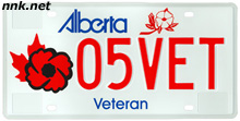 FIRST YEAR OF ISSUE: 2004 PLATE TYPE: OPTIONAL ISSUE BASE MATERIAL: ALUMINUM REFLECTORIZATION: NON-REFLECTIVE VALIDATION: NO DECAL USED ON PLATE NOTES: Alberta Military Veteran license plate is available to qualified veterans.