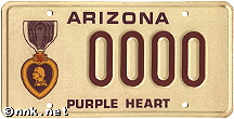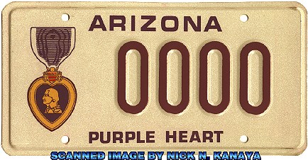 FIRST YEAR OF ISSUE: 1989 PLATE TYPE: OPTIONAL ISSUE BASE MATERIAL: ALUMINUM REFLECTORIZATION: PARTIAL - BACKGROUND ONLY VALIDATION: N/A NOTES: ISSUED TO PURPLE HEART RECIPIENTS