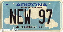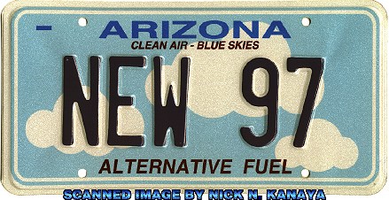 FIRST YEAR OF ISSUE: 1996 PLATE TYPE: OPTIONAL ISSUE BASE MATERIAL: ALUMINUM REFLECTORIZATION: PARTIAL - BACKGROUND ONLY VALIDATION: 2 DECALS ON THE PLATE NOTES: FOR USE ON AN ALTERNATIVE FUEL VEHICLE