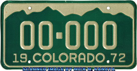 FIRST YEAR OF ISSUE: 1972 PLATE TYPE: GENERAL ISSUE BASE MATERIAL: STEEL REFLECTORIZATION: FULLY REFLECTIVE VALIDATION: NO DECALS USED ON PLATE NOTES: WHITE SERIAL ON REFLECTIVE GREEN BASE