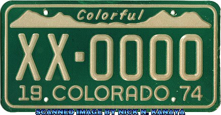 FIRST YEAR OF ISSUE: 1974 PLATE TYPE: GENERAL ISSUE BASE MATERIAL: STEEL REFLECTORIZATION: FULLY REFLECTIVE VALIDATION: NO DECALS USED ON PLATE NOTES: WHITE SERIAL ON REFLECTIVE GREEN BASE