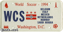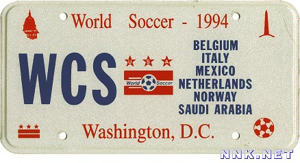 REFERENCE NUMBER: DC-1994-WCSFIRST YEAR OF ISSUE: 1994 PLATE TYPE: SPECIAL EVENT BASE MATERIAL: ALUMINUM REFLECTORIZATION: PARTIAL - BACKGROUND ONLY VALIDATION: UNKNOWN NOTES: 1994 WORLD CUP SOCCER