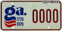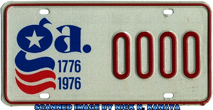 REFERENCE NUMBER: GA-1976-BICFIRST YEAR OF ISSUE: 1976 PLATE TYPE: OPTIONAL ISSUE BASE MATERIAL: ALUMINUM REFLECTORIZATION: PARTIAL - BACKGROUND ONLY VALIDATION: NO DECAL USED FOR 1976 NOTES: 5-year vanity plate - $10.00 extra fee the first year