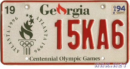 REFERENCE NUMBER: GA-1993-OLYFIRST YEAR OF ISSUE: 1993 PLATE TYPE: OPTIONAL ISSUE BASE MATERIAL: ALUMINUM REFLECTORIZATION: PARTIAL - BACKGROUND ONLY VALIDATION: 2 OR MORE DECALS ON THE PLATE NOTES: 1996 ATLANTA OLYMPIC GAMES