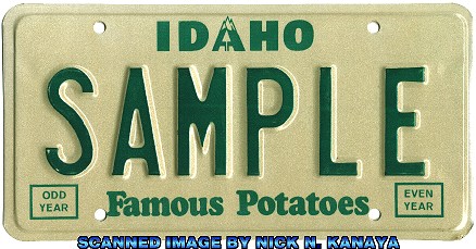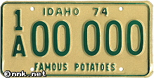 REFERENCE NUMBER: ID-1974FIRST YEAR OF ISSUE: 1974 PLATE TYPE: GENERAL ISSUE BASE MATERIAL: ALUMINUM REFLECTORIZATION: FULLY REFLECTIVE VALIDATION: 1 OR MORE DECALS ON EACH PLATE (1975-) NOTES: GREEN SERIAL ON REFLECTIVE WHITE BASE