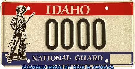 REFERENCE NUMBER: ID-1993ND-NGFIRST YEAR OF ISSUE: 1993 PLATE TYPE: OPTIONAL ISSUE BASE MATERIAL: ALUMINUM REFLECTORIZATION: PARTIAL - BACKGROUND ONLY VALIDATION: 1 DECAL ON EACH PLATE NOTES: NATIONAL GUARD