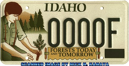REFERENCE NUMBER: ID-1996ND-TWFIRST YEAR OF ISSUE: 1996 PLATE TYPE: OPTIONAL ISSUE BASE MATERIAL: ALUMINUM REFLECTORIZATION: PARTIAL - BACKGROUND ONLY VALIDATION: 1 DECAL ON EACH PLATE NOTES: FOREST - TIMBER WOODSMAN