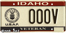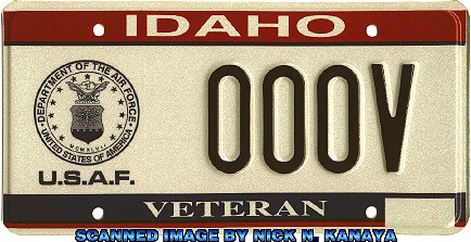 REFERENCE NUMBER: ID-1997ND-VAFFIRST YEAR OF ISSUE: 1997 PLATE TYPE: OPTIONAL ISSUE BASE MATERIAL: ALUMINUM REFLECTORIZATION: PARTIAL - BACKGROUND ONLY VALIDATION: 1 DECAL ON EACH PLATE NOTES: U. S. AIR FORCE VETERAN ISSUE