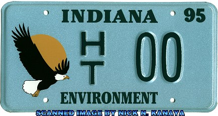 REFERENCE NUMBER: IN-1995-ENVFIRST YEAR OF ISSUE: 1994 PLATE TYPE: OPTIONAL ISSUE BASE MATERIAL: ALUMINUM REFLECTORIZATION: PARTIAL - BACKGROUND ONLY VALIDATION: 2 DECALS ON REAR PLATE NOTES: OTHER YEARS BESIDES '95' MAY APPEAR ON PLATE