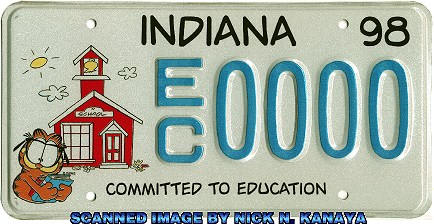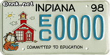 REFERENCE NUMBER: IN-1998-CTEFIRST YEAR OF ISSUE: 1997 PLATE TYPE: OPTIONAL ISSUE BASE MATERIAL: ALUMINUM REFLECTORIZATION: PARTIAL - BACKGROUND ONLY VALIDATION: 2 DECALS ON REAR PLATE NOTES: SPECIAL CAUSE - COMMITTED TO EDUCATION