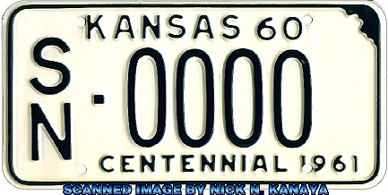 REFERENCE NUMBER: KS-1960FIRST YEAR OF ISSUE: 1959 PLATE TYPE: GENERAL ISSUE BASE MATERIAL: STEEL REFLECTORIZATION: NON-REFLECTIVE VALIDATION: NO DECALS USED ON PLATE NOTES: BLUE SERIAL ON WHITE BASE