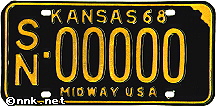 REFERENCE NUMBER: KS-1968FIRST YEAR OF ISSUE: 1967 PLATE TYPE: GENERAL ISSUE BASE MATERIAL: STEEL REFLECTORIZATION: PARTIAL - SERIAL ONLY VALIDATION: NO DECALS USED ON PLATE NOTES: REFLECTIVE YELLOW SERIAL ON BLACK BASE