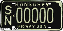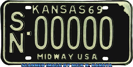REFERENCE NUMBER: KS-1969FIRST YEAR OF ISSUE: 1968 PLATE TYPE: GENERAL ISSUE BASE MATERIAL: STEEL REFLECTORIZATION: PARTIAL - SERIAL ONLY VALIDATION: NO DECALS USED ON PLATE NOTES: REFLECTIVE WHITE SERIAL ON BLACK BASE