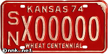 REFERENCE NUMBER: KS-1974-CFIRST YEAR OF ISSUE: 1973 PLATE TYPE: GENERAL ISSUE BASE MATERIAL: STEEL REFLECTORIZATION: PARTIAL - SERIAL ONLY VALIDATION: NO DECALS USED ON PLATE NOTES: REFLECTIVE WHITE SERIAL ON RED BASE 'WHEAT CENTENNIAL' AT THE BOTTOM OF PLATE