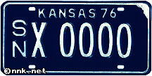 REFERENCE NUMBER: KS-1976FIRST YEAR OF ISSUE: 1975 PLATE TYPE: GENERAL ISSUE BASE MATERIAL: ALUMINUM REFLECTORIZATION: NON-REFLECTIVE VALIDATION: YEAR STICKER ON REAR PLATE (1977-1980) NOTES: WHITE SERIAL ON BLUE BASE