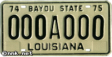REFERENCE NUMBER: LA-1974FIRST YEAR OF ISSUE: 1974 PLATE TYPE: GENERAL ISSUE BASE MATERIAL: ALUMINUM REFLECTORIZATION: PARTIAL - BACKGROUND ONLY VALIDATION: 2 DECALS ON THE PLATE NOTES: BLACK SERIAL ON REFLECTIVE WHITE BASE