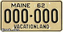 REFERENCE NUMBER: ME-1962FIRST YEAR OF ISSUE: 1962 PLATE TYPE: GENERAL ISSUE BASE MATERIAL: STEEL REFLECTORIZATION: PARTIAL - BACKGROUND ONLY VALIDATION: METAL TAB USED ON THE PLATE (1963-1967) NOTES: BLACK SERIAL ON REFLECTIVE WHITE BASE