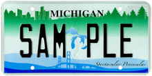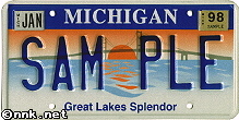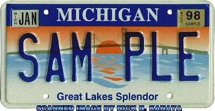 REFERENCE NUMBER: MI-1997ND-GLSFIRST YEAR OF ISSUE: 1997 PLATE TYPE: OPTIONAL ISSUE BASE MATERIAL: ALUMINUM REFLECTORIZATION: PARTIAL - BACKGROUND ONLY VALIDATION: 2 DECALS ON REAR PLATE NOTES: GREAT LAKES SPLENDOR GRAPHICS