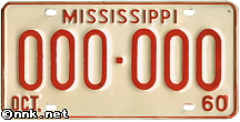 REFERENCE NUMBER: MS-1960FIRST YEAR OF ISSUE: 1959 PLATE TYPE: GENERAL ISSUE BASE MATERIAL: STEEL REFLECTORIZATION: NON-REFLECTIVE VALIDATION: NO DECALS USED ON PLATE NOTES: RED SERIAL ON WHITE BASE