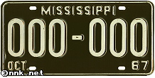 REFERENCE NUMBER: MS-1967FIRST YEAR OF ISSUE: 1966 PLATE TYPE: GENERAL ISSUE BASE MATERIAL: STEEL REFLECTORIZATION: NON-REFLECTIVE VALIDATION: NO DECALS USED ON PLATE NOTES: WHITE SERIAL ON BLACK BASE