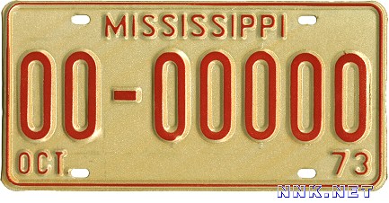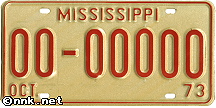 REFERENCE NUMBER: MS-1973FIRST YEAR OF ISSUE: 1972 PLATE TYPE: GENERAL ISSUE BASE MATERIAL: STEEL REFLECTORIZATION: PARTIAL - BACKGROUND ONLY VALIDATION: NO DECALS USED ON PLATE NOTES: RED SERIAL ON REFLECTIVE WHITE BASE
