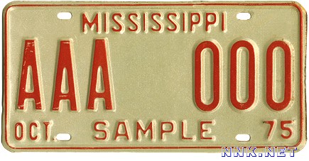 REFERENCE NUMBER: MS-1975FIRST YEAR OF ISSUE: 1974 PLATE TYPE: GENERAL ISSUE BASE MATERIAL: STEEL REFLECTORIZATION: PARTIAL - BACKGROUND ONLY VALIDATION: NO DECALS USED ON PLATE NOTES: RED SERIAL ON REFLECTIVE WHITE BASE
