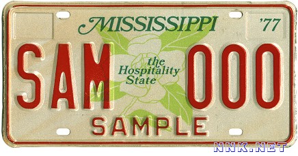 REFERENCE NUMBER: MS-1977FIRST YEAR OF ISSUE: 1976 PLATE TYPE: GENERAL ISSUE BASE MATERIAL: STEEL REFLECTORIZATION: PARTIAL - BACKGROUND ONLY VALIDATION: 2 DECALS ON THE PLATE (1978-) NOTES: RED SERIAL ON REFLECTIVE GRAPHIC BASE