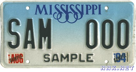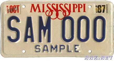 REFERENCE NUMBER: MS-1976FIRST YEAR OF ISSUE: 1975 PLATE TYPE: GENERAL ISSUE BASE MATERIAL: STEEL REFLECTORIZATION: PARTIAL - BACKGROUND ONLY VALIDATION: NO DECALS USED ON PLATE NOTES: MAROON SERIAL ON REFLECTIVE WHITE BASE