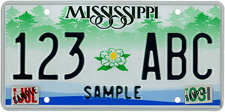 FIRST YEAR OF ISSUE: 2002 PLATE TYPE: GENERAL ISSUE BASE MATERIAL: ALUMINUM REFLECTORIZATION: PARTIAL - BACKGROUND ONLY VALIDATION: MONTH AND YEAR DECAL ON THE PLATE NOTES: DARK GREEN SERIAL ON NEW MAGNOLIA GRAPHIC BASE