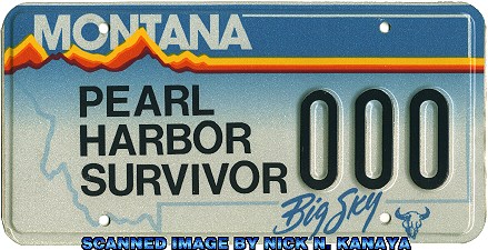 REFERENCE NUMBER: MT-1991ND-PHSFIRST YEAR OF ISSUE: 1991 PLATE TYPE: OPTIONAL ISSUE BASE MATERIAL: ALUMINUM REFLECTORIZATION: PARTIAL - BACKGROUND ONLY VALIDATION: 2 DECALS ON EACH PLATE NOTES: PEARL HARBOR SURVIVOR