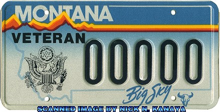 REFERENCE NUMBER: MT-1991ND-VARFIRST YEAR OF ISSUE: 1991 PLATE TYPE: OPTIONAL ISSUE BASE MATERIAL: ALUMINUM REFLECTORIZATION: PARTIAL - BACKGROUND ONLY VALIDATION: 2 DECALS ON EACH PLATE NOTES: ISSUED TO U. S. ARMY VETERANS