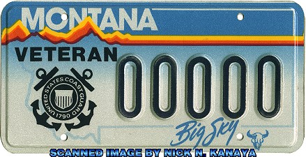 REFERENCE NUMBER: MT-1991ND-VCGFIRST YEAR OF ISSUE: 1991 PLATE TYPE: OPTIONAL ISSUE BASE MATERIAL: ALUMINUM REFLECTORIZATION: PARTIAL - BACKGROUND ONLY VALIDATION: 2 DECALS ON EACH PLATE NOTES: ISSUED TO U. S. COAST GUARD VETERANS