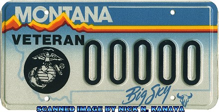 REFERENCE NUMBER: MT-1991ND-VMCFIRST YEAR OF ISSUE: 1991 PLATE TYPE: OPTIONAL ISSUE BASE MATERIAL: ALUMINUM REFLECTORIZATION: PARTIAL - BACKGROUND ONLY VALIDATION: 2 DECALS ON EACH PLATE NOTES: ISSUED TO U. S. MARINE CORPS VETERANS