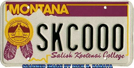 REFERENCE NUMBER: MT-1992ND-SKCFIRST YEAR OF ISSUE: 1992 PLATE TYPE: COLLEGIATE ISSUE BASE MATERIAL: ALUMINUM REFLECTORIZATION: PARTIAL - BACKGROUND ONLY VALIDATION: 2 DECALS ON EACH PLATE NOTES: SALISH KOOTENAI COLLEGE