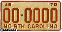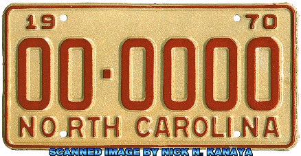 REFERENCE NUMBER: NC-1970FIRST YEAR OF ISSUE: 1969 PLATE TYPE: GENERAL ISSUE BASE MATERIAL: STEEL REFLECTORIZATION: PARTIAL - BACKGROUND ONLY VALIDATION: NO DECALS USED ON PLATE NOTES: RED SERIAL ON REFLECTIVE WHITE BASE