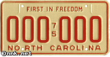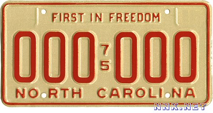 REFERENCE NUMBER: NC-1975FIRST YEAR OF ISSUE: 1974 PLATE TYPE: GENERAL ISSUE BASE MATERIAL: ALUMINUM REFLECTORIZATION: PARTIAL - BACKGROUND ONLY VALIDATION: 1 DECAL ON BOTH PLATES (1976-78) NOTES: RED SERIAL ON REFLECTIVE WHITE BASE