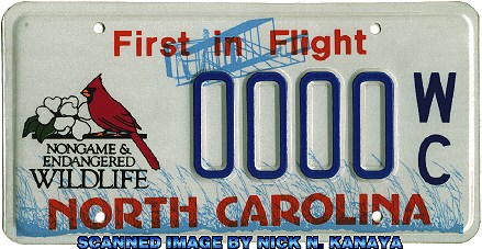 REFERENCE NUMBER: NC-1995ND-ENVFIRST YEAR OF ISSUE: 1995 PLATE TYPE: OPTIONAL ISSUE BASE MATERIAL: ALUMINUM REFLECTORIZATION: PARTIAL - BACKGROUND ONLY VALIDATION: 2 DECALS ON REAR PLATE NOTES: NONGAME AND ENDANGERED WILDLIFE PROTECTION