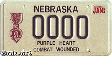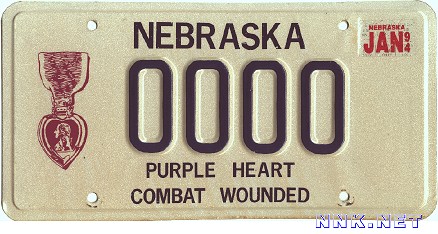 REFERENCE NUMBER: NE-1984ND-PURFIRST YEAR OF ISSUE: 1984 PLATE TYPE: OPTIONAL ISSUE BASE MATERIAL: STEEL REFLECTORIZATION: PARTIAL - BACKGROUND ONLY VALIDATION: 1 DECAL ON EACH PLATE NOTES: ISSUED TO PURPLE HEART RECIPIENT