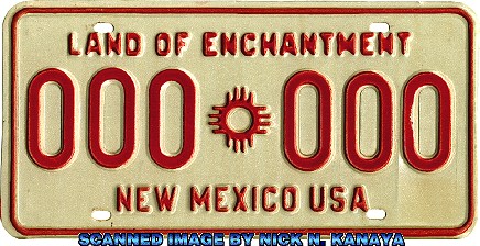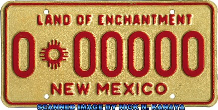REFERENCE NUMBER: NM-1977ND-2FIRST YEAR OF ISSUE: 1977 PLATE TYPE: GENERAL ISSUE BASE MATERIAL: ALUMINUM REFLECTORIZATION: PARTIAL - BACKGROUND ONLY VALIDATION: 1 DECAL ON THE PLATE NOTES: RED SERIAL ON REFLECTIVE YELLOW BASE