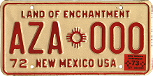 REFERENCE NUMBER: NM-1972FIRST YEAR OF ISSUE: 1971 PLATE TYPE: GENERAL ISSUE BASE MATERIAL: STEEL REFLECTORIZATION: PARTIAL - BACKGROUND ONLY VALIDATION: 1 DECAL ON THE PLATE NOTES: RED SERIAL ON REFLECTIVE WHITE BASE
