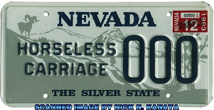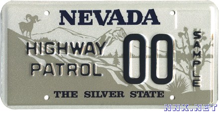 FIRST YEAR OF ISSUE: 1986 PLATE TYPE: OPTIONAL ISSUE BASE MATERIAL: ALUMINUM REFLECTORIZATION: PARTIAL - BACKGROUND ONLY VALIDATION: NO DECALS USED ON THE PLATE NOTES: FOR USE BY THE NEVADA HIGHWAY PATROL