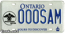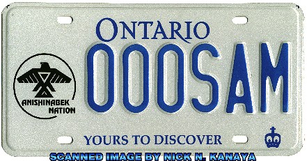 REFERENCE NUMBER: ON-1997ND-ANIFIRST YEAR OF ISSUE: 1997 PLATE TYPE: OPTIONAL ISSUE BASE MATERIAL: ALUMINUM REFLECTORIZATION: PARTIAL - BACKGROUND ONLY VALIDATION: 1 DECAL ON THE PLATE NOTES: ANISHINABEK NATION