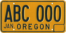 REFERENCE NUMBER: OR-1973NDFIRST YEAR OF ISSUE: 1973 PLATE TYPE: GENERAL ISSUE BASE MATERIAL: ALUMINUM REFLECTORIZATION: PARTIAL - BACKGROUND ONLY VALIDATION: 1 DECAL ON EACH PLATE NOTES: DARK BLUE SERIAL ON REFLECTIVE YELLOW BASE