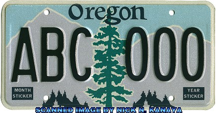 REFERENCE NUMBER: OR-1988NDFIRST YEAR OF ISSUE: 1988 PLATE TYPE: GENERAL ISSUE BASE MATERIAL: ALUMINUM REFLECTORIZATION: PARTIAL - BACKGROUND ONLY VALIDATION: 2 DECALS ON EACH PLATE NOTES: ORIGINAL VERSION WITH TAN SKY AND GREY MOUNTAINS