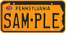 REFERENCE NUMBER: PA-1976FIRST YEAR OF ISSUE: 1971 PLATE TYPE: GENERAL ISSUE BASE MATERIAL: ALUMINUM REFLECTORIZATION: NON-REFLECTIVE VALIDATION: 1 DECAL ON THE PLATE NOTES: YELLOW-ORANGE SERIAL ON DARK BLUE BASE