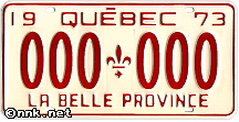 REFERENCE NUMBER: QC-1973FIRST YEAR OF ISSUE: 1972 PLATE TYPE: GENERAL ISSUE BASE MATERIAL: ALUMINUM REFLECTORIZATION: NON-REFLECTIVE VALIDATION: NO DECALS USED ON PLATE NOTES: RED SERIAL ON WHITE BASE