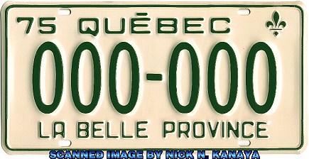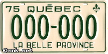 REFERENCE NUMBER: QC-1975FIRST YEAR OF ISSUE: 1974 PLATE TYPE: GENERAL ISSUE BASE MATERIAL: ALUMINUM REFLECTORIZATION: NON-REFLECTIVE VALIDATION: NO DECALS USED ON PLATE NOTES: GREEN SERIAL ON WHITE BASE